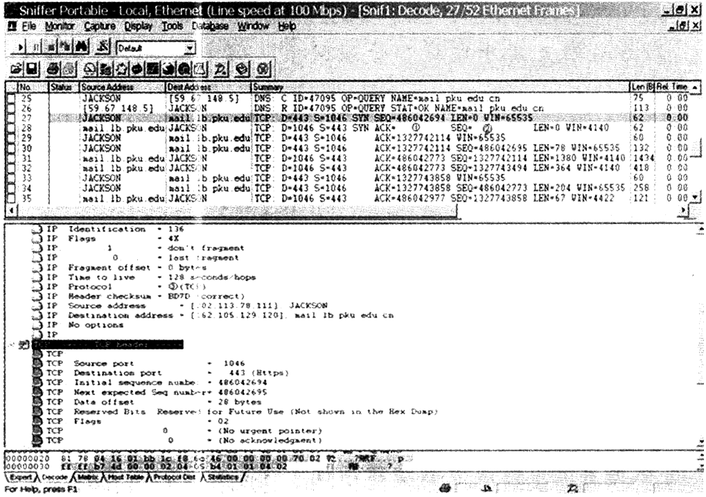 Sniffer捕获的数据包