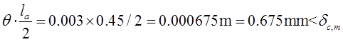 0.07te=0.07×0.089=0.00623m=6.23mm>δc,m,竖向变形量满足稳定要求。