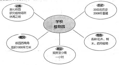 请根据以下构思图,写一份关于你校植物园的英语简介: