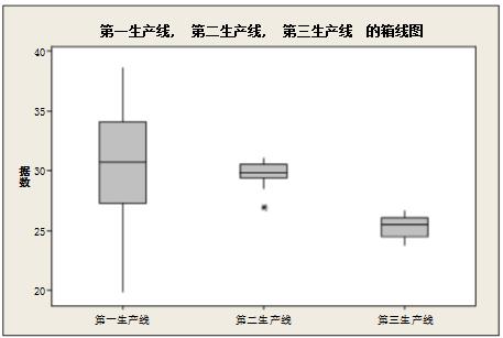 某企业有三条生产线都生产同一种产品,该产品的重量是关键特性,为判断3条生产线是否存在差异,各抽取了30个产品称重,做成下图,则以下结论不正确的是()