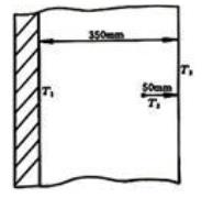 如图所示,有一平壁加热炉。为减少热损失,在加热炉外壁包一层保温层,其厚度为350mm。已知保温层外壁温度T3为30℃。在保温层50mm深处测得温度T2为60℃。试求加热炉外壁温度T1。