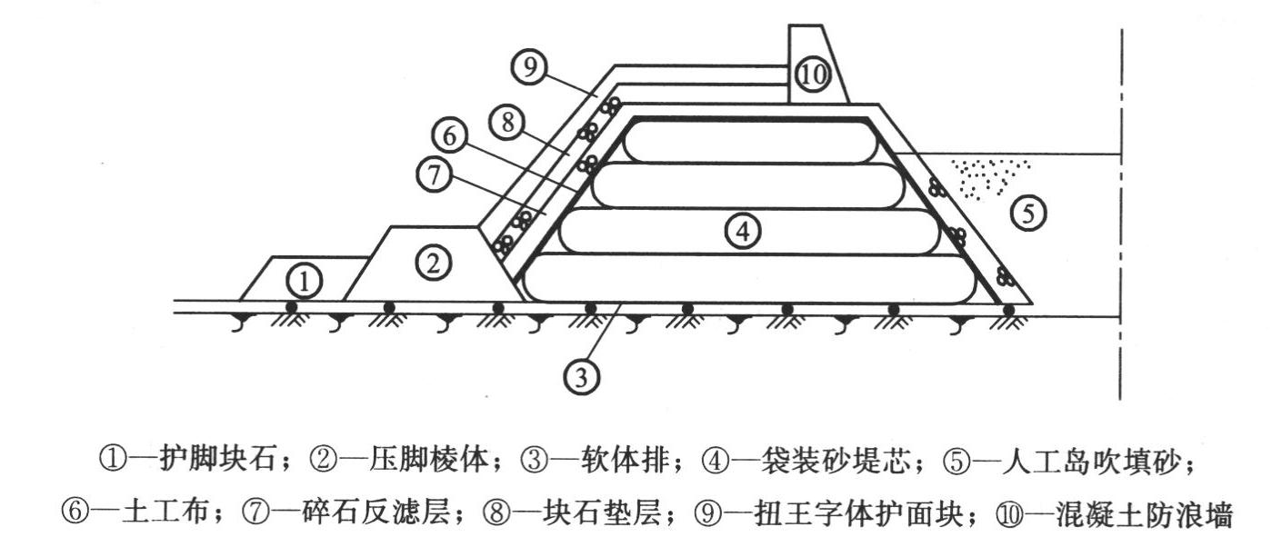 。已知人工岛建设地点为沙坝岛屿,属于浅滩潮间带和水下浅滩地貌类型,绝大多数区域水深0~2m。人工岛北侧3.5km处为浅海养殖区,距离海底输油管线南侧约3km处为某海产品制造工厂,项目西南侧5km处为一个深水槽,为工程附近区域工业用水的水源。项目较远处有西北侧10km的某海洋水产资源保护区。第4题: