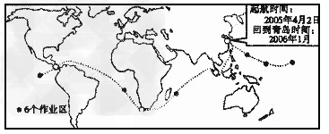 依据我国科学考察船“大洋1号”首次进行横跨三大洋的科学考察环形线路,完成问题。