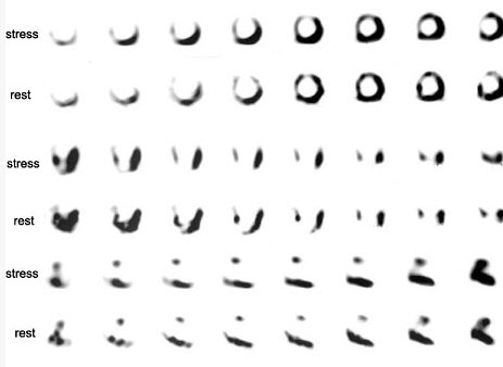 B、心动电影显示同向运动,局部射血分数减低,心室缩短率降低