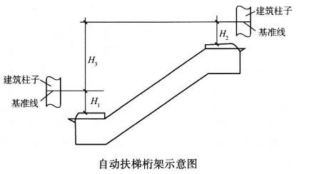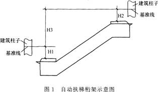 在土建交接检验中,检查了建筑结构的预留孔、垂直净空高度、基准线设置(图1)等,均符合自动扶梯安装要求。
