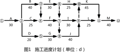 1、总承包商提交的施工进度计划的计算工期为235d。