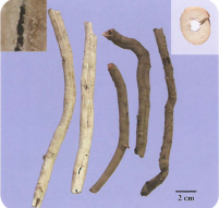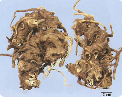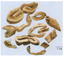 E.黄白色维管束,排列成双卷状