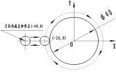 刀具起点在(-40,0),法向切入(-20,0)点,切一个40mm的整圆工件,并法向切出返回点(-40,0),刀具轨迹如图所示。利用刀具半径补偿指令,编写零件的轮廓加工程序。