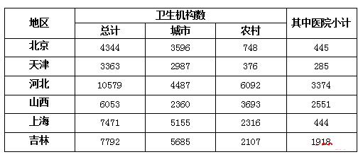 查看答案根据以下资料,下列几个地区中,城市卫生机构比农村卫生机构少的是()